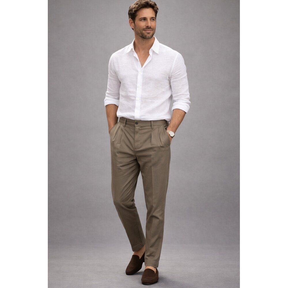 - 2 Bundfalten vorne und etwas mehr Weite im Oberschenkelbereich