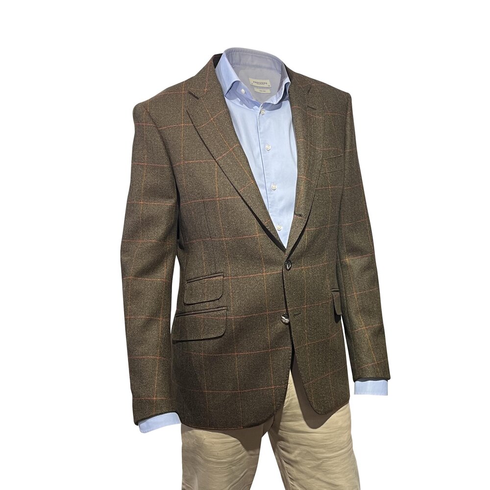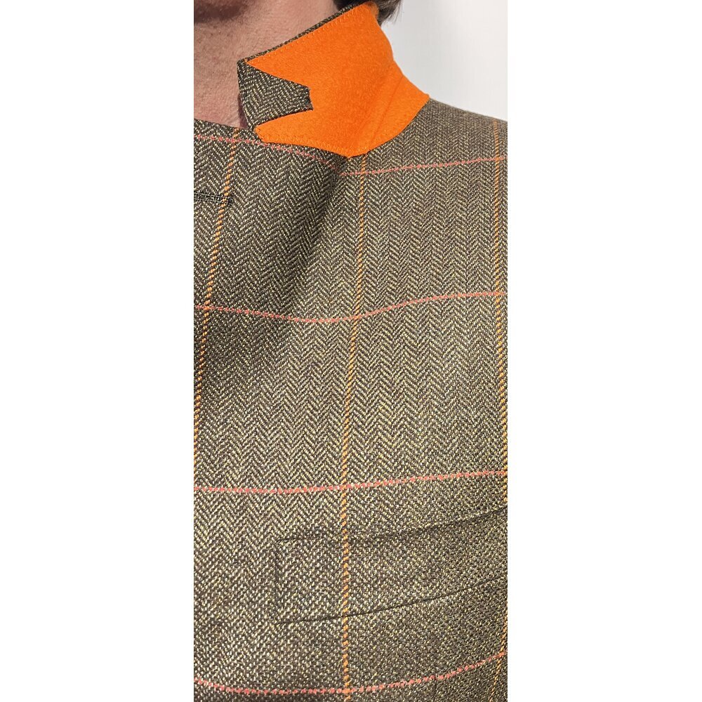 Jackett "Moritz" ausTweed in Oliv-Braun mit Overcheck in Orange 46